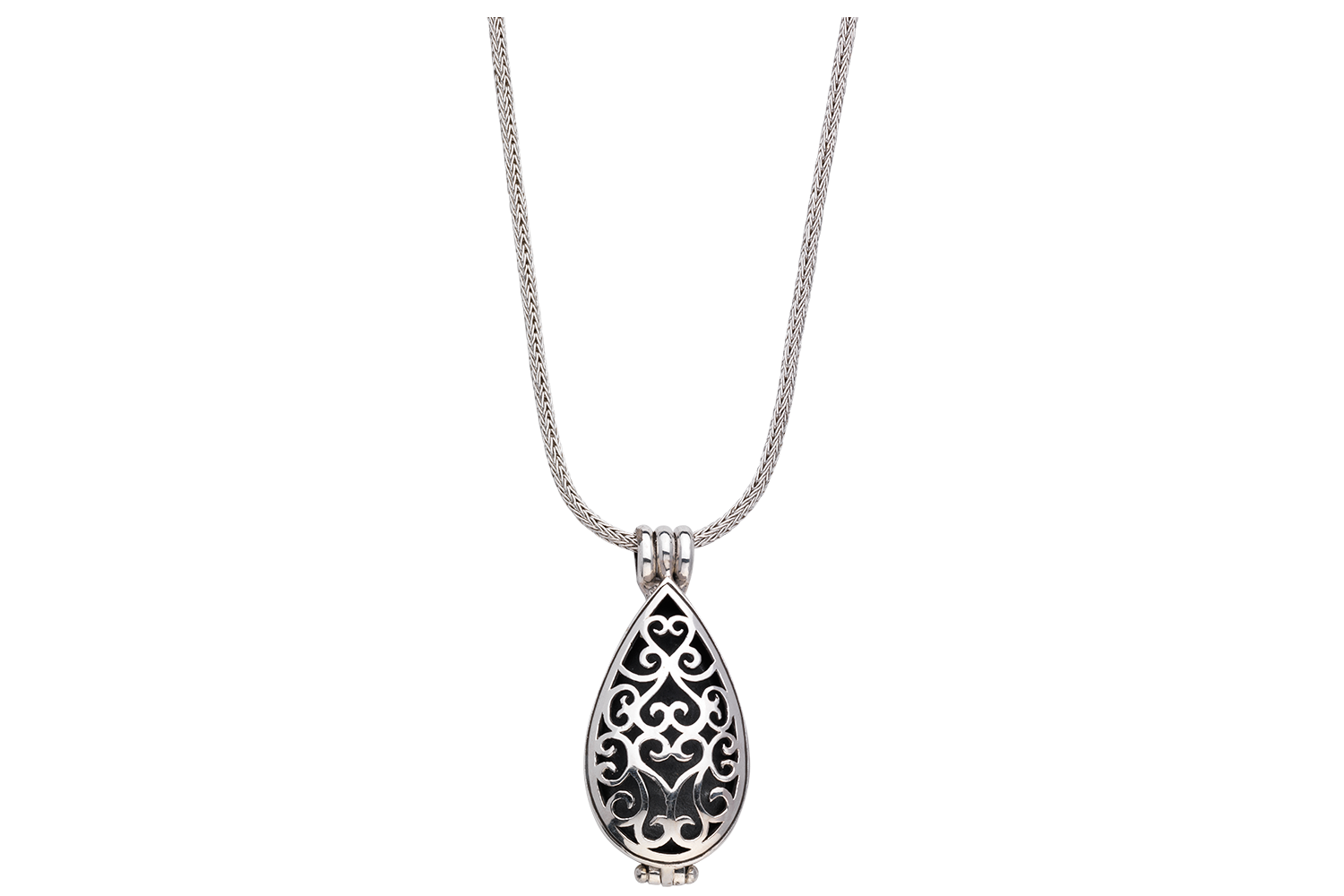Der Aroma Dream Silver Drop an der Royal Snake Chain ist eine wundervolle, elegante Version um seinen Lieblingsduft zu tragen. An der 70 cm langen Kette hängt der Aroma Drop über dem Brustbereich und verströmt einen wundervollen Duft.